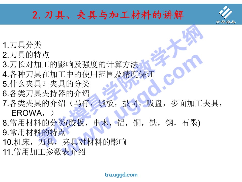 • 2.刀具、夹具与加工材料的讲解