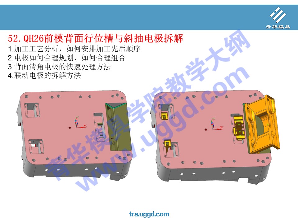 >52.QH26前模背面行位槽与斜抽电极拆解