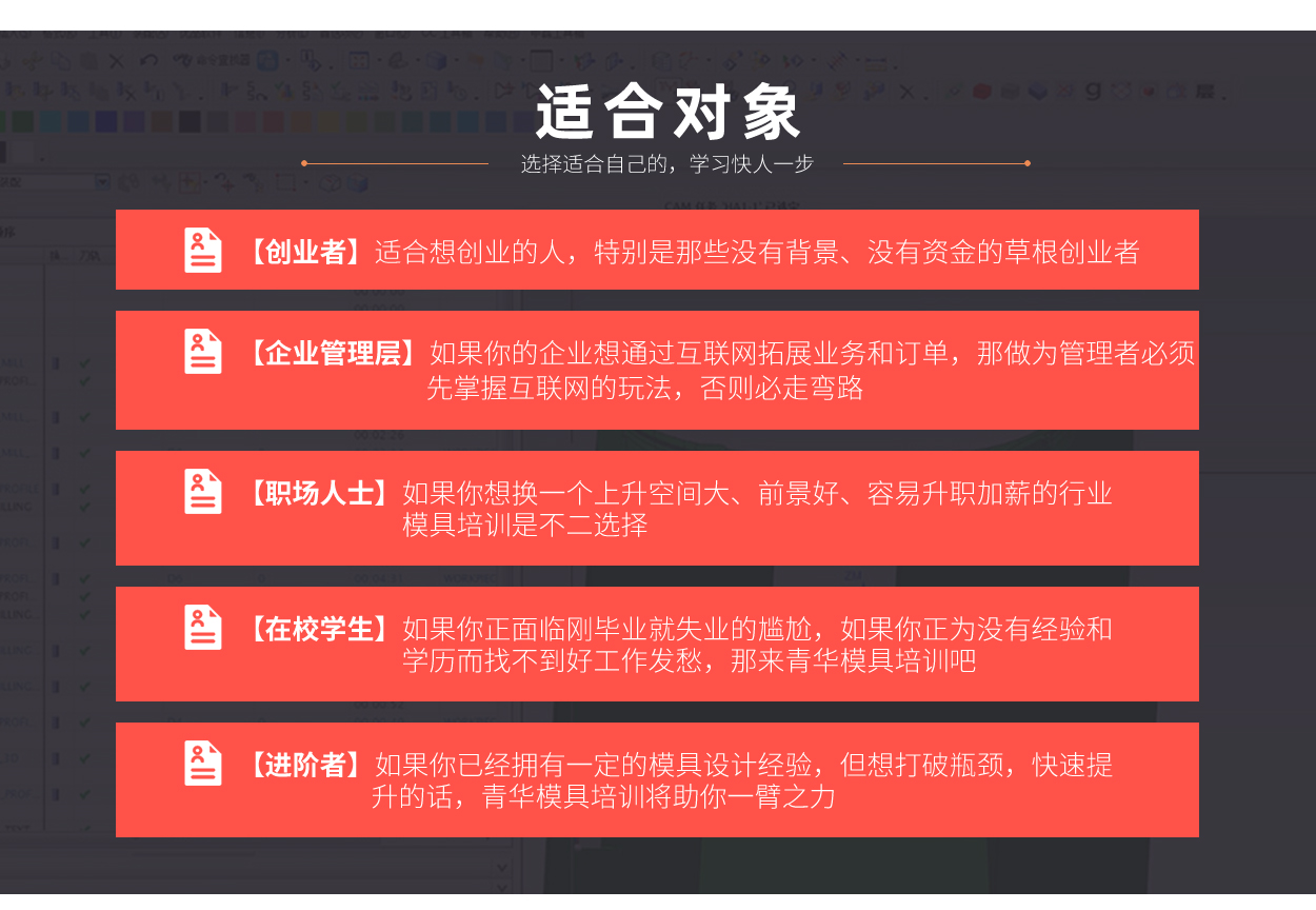 青华模具创始人 《NX》杂志社社长 中国模具研究中心创始人 《企业经营智慧》课程创始人 《班长团精英成长营》创始人